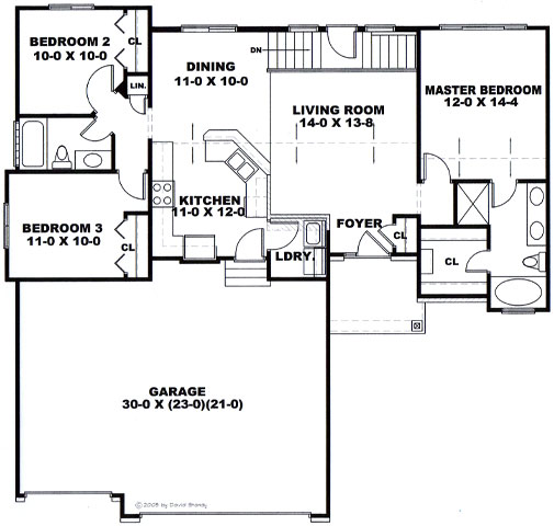 Vaulted ceilings abound in this plan with the Kitchen, Dining Room, Living Room, Mater Bedroom and Mater Bath included. The door at the midpoint of the stairs makes access from both the main floor and the lower level to the patio a breeze.